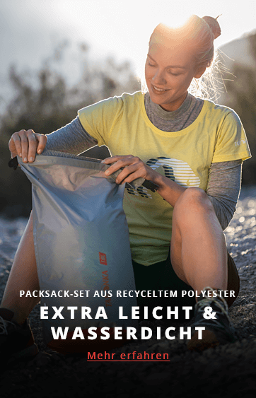 Sie sorgen für Übersicht (Socken in diesen Beutel, Pullis in jenen), sparen, einmal „etabliert“, Zeit beim Ein- und Auspacken und schützen empfindliche Kleidung (die Seidenbluse!) oder elektronische Ausrüstung. Bei Tatonka findest du eine Riesenauswahl an Packbeuteln – vom flachen Reißverschlusstäschchen bis zum wasserdichten Packsack.