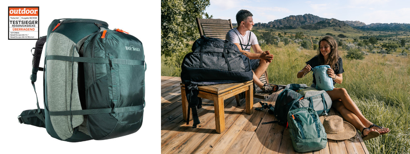 In der Februar-Ausgabe der OUTDOOR testete das Redaktionsteam zwölf Reiserucksäcke bis 89 Liter Volumen auf ihre Eigenschaften im Einsatz. Der Tatonka Great Escape, der bei seinem Update im Herbst 2025 einige neue Features wie zum Beispiel ein variables Tragesystem erhalten hat, wurde dabei Testsieger in der Kategorie Reiserucksäcke mit der Bewertung ÜBERRAGEND.