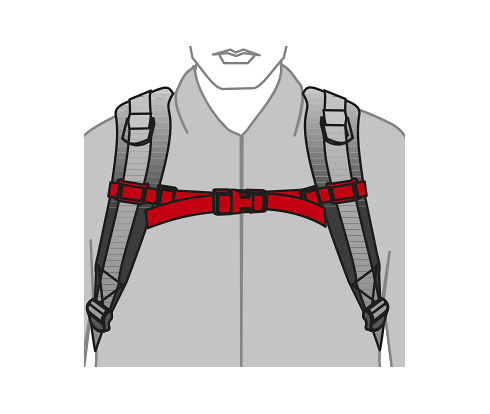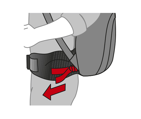 Buckle up the chest strap. This improves the freedom of movement when moving actively and stabilises the carrying system, thereby preventing tiredness.