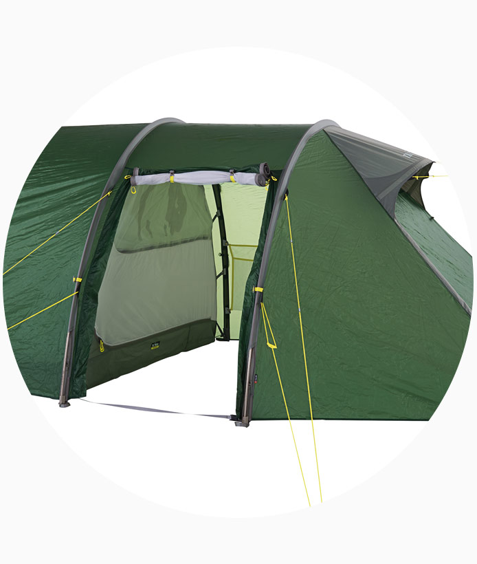 The side entrance into the tent can be closed with a separate mosquito net for protection against insects.