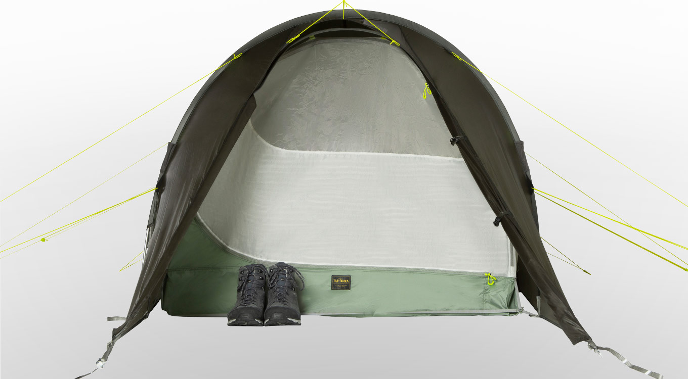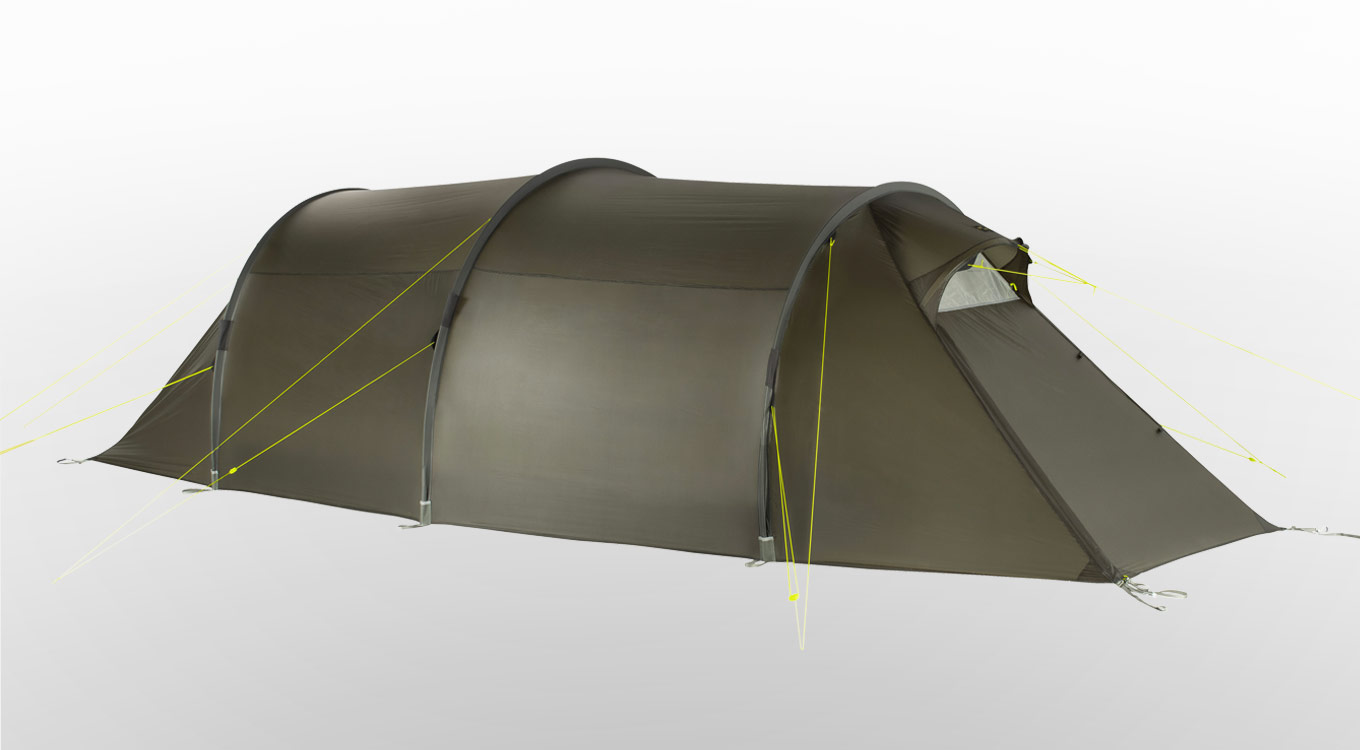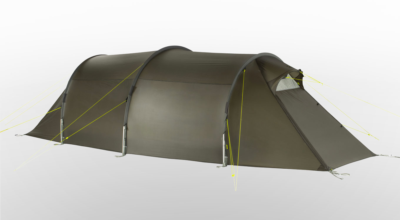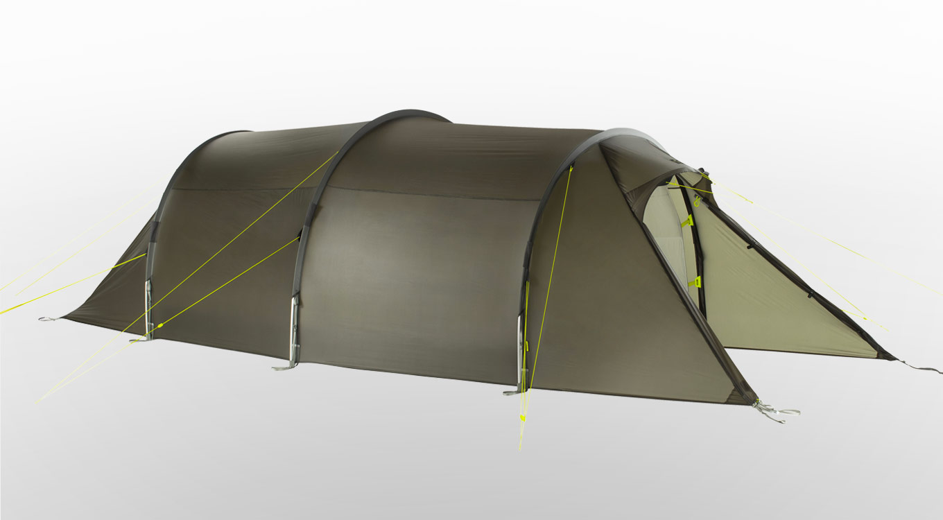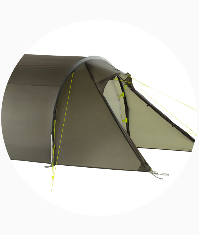 The Rokua trekking tents have an exceptional amount of space relative to their weight. They offer an extra-long inner tent and two front accesses into the outer and inner tents. These also allow for optimized ventilation when needed. On each side there is a vestibule for the equipment.