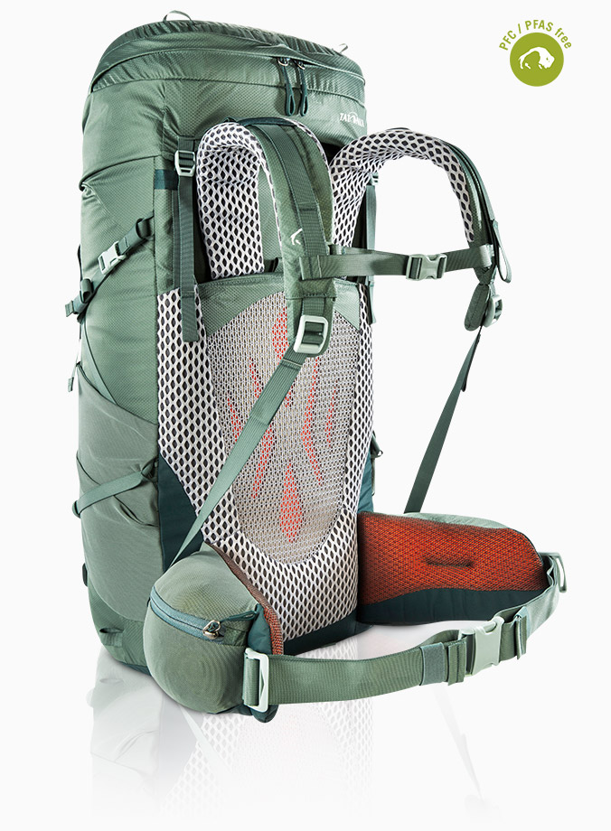 El sistema de transporte Frame Comfort Light de nuevo desarrollo combina un ajuste ceñido con una agradable circulación del aire gracias al acolchado dorsal ventilado tensado sobre un ligero armazón de acero para muelles. El ajuste continuo a la longitud de la espalda garantiza una posición óptima de la mochila y, por tanto, una transferencia eficaz de la carga a la zona pélvica.