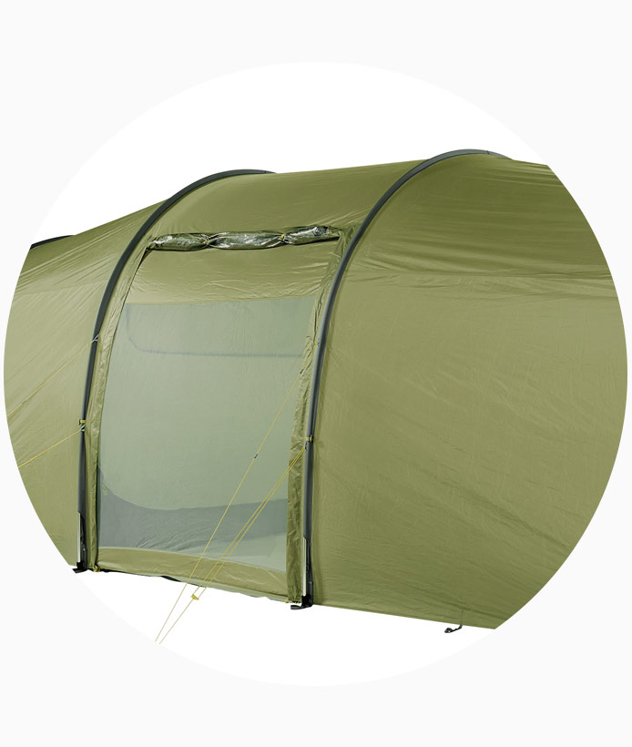 Las tiendas Family están en lo alto. Ofrecen amplios camarotes y grandes vestíbulos con entradas laterales opuestas. Son ideales para acampar en el camping.