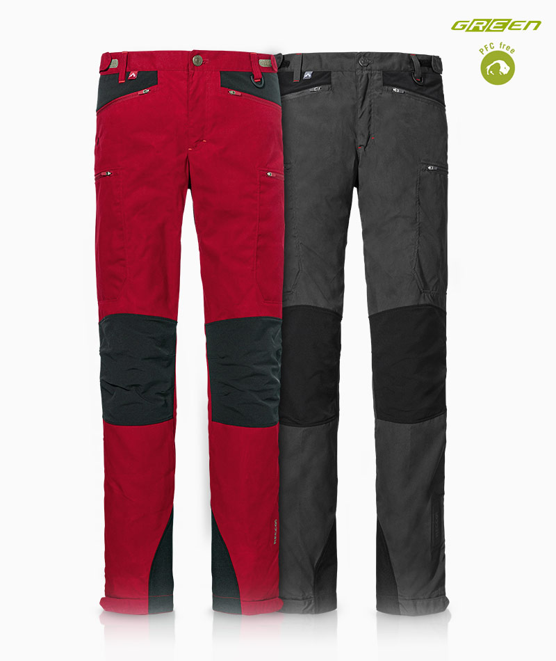 Voor elke broek in ons broekenassortiment bevelen wij een gebruiksgebied aan waar het materiaal, de snit en de eigenschappen het best tot hun recht komen. U kunt het ook herkennen aan de verschillende pictogrammen. Wij geven ook het temperatuurbereik aan waarin de broek optimaal comfort biedt. En voor uw perfecte pasvorm zijn alle broeken ook verkrijgbaar in normale, lange en korte maten.